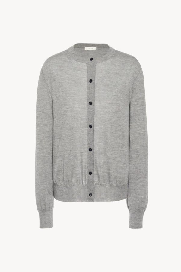 The Row Essentials cardigan sweater in superfine cashmere knit with finely ribbed neckline, cuffs and hem.