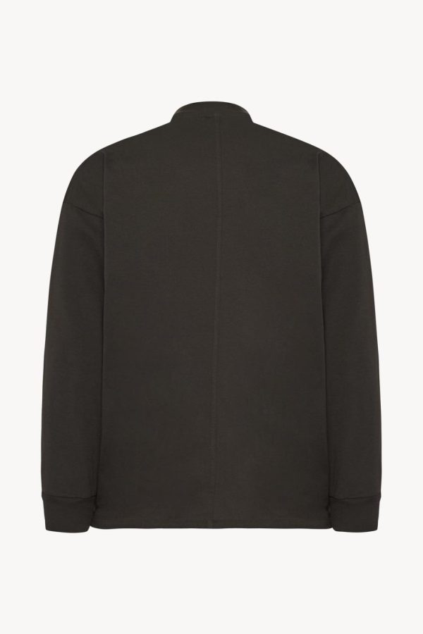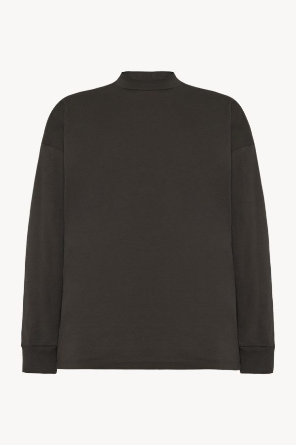 Long-sleeved mock neck t-shirt in Supima cotton jersey with oversized fit and ribbed collar.