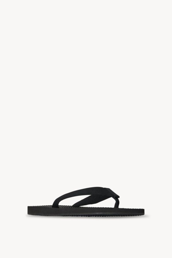 Versatile flip-flop sandal in cotton grosgrain with textured footbed and lightweight rubber sole.