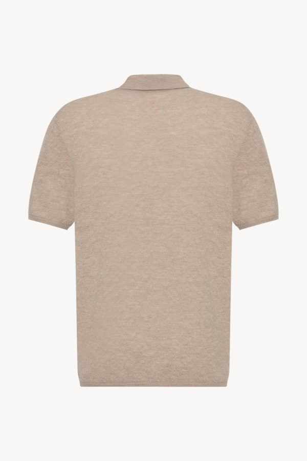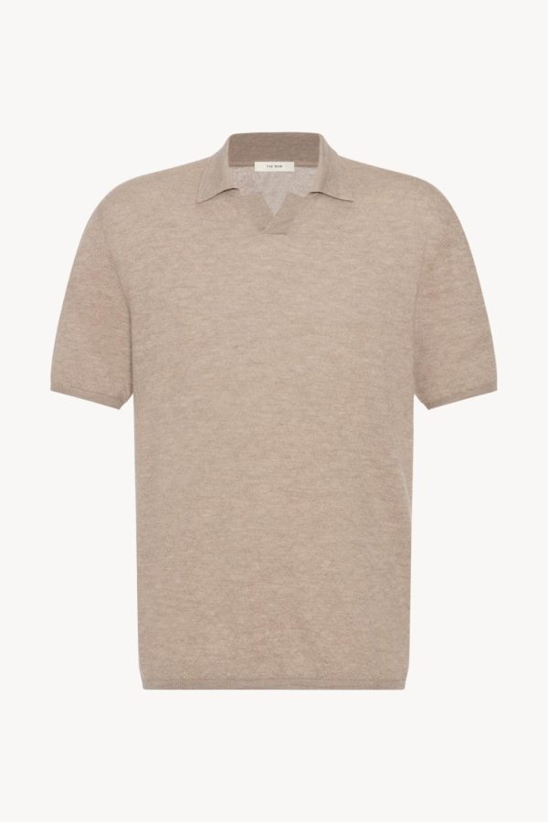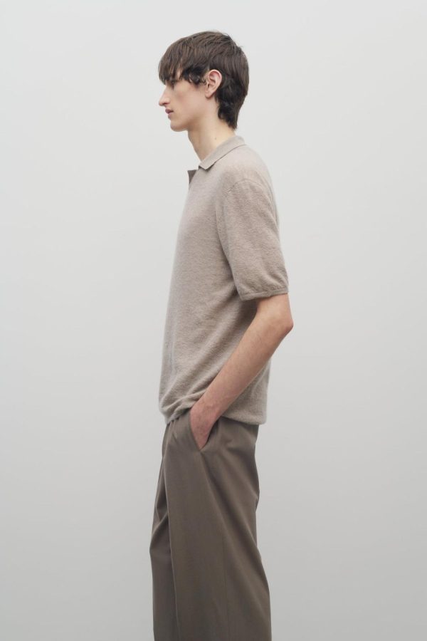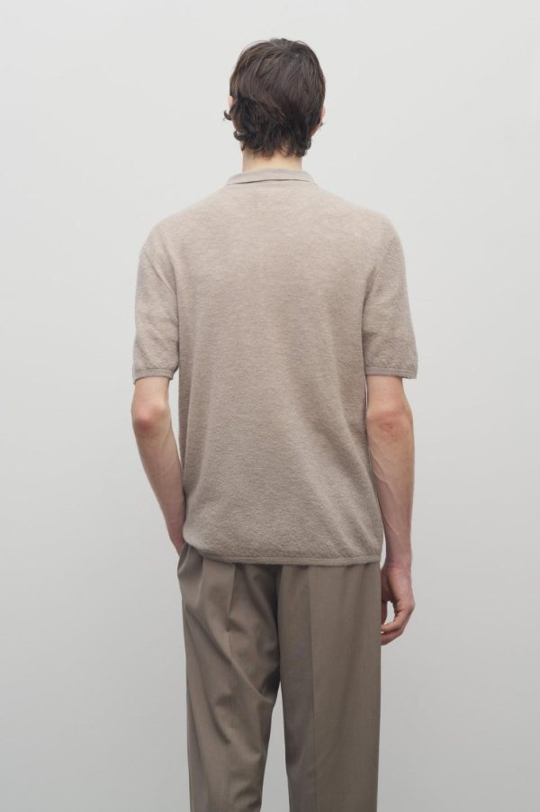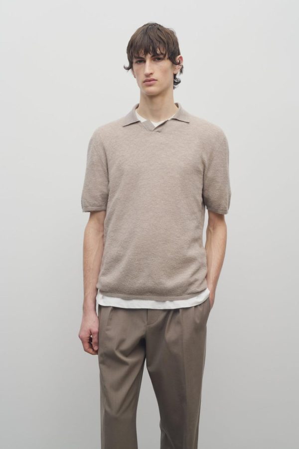 Short-sleeved polo top in fine lightweight cashmere with slim fit, open placket, and ribbed cuffs and hem.