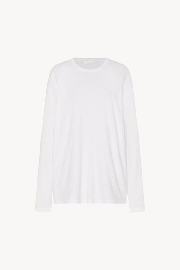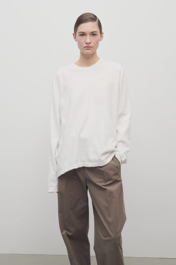Relaxed crewneck top in softly brushed fine cotton with slightly oversized fit and ribbed neckline.