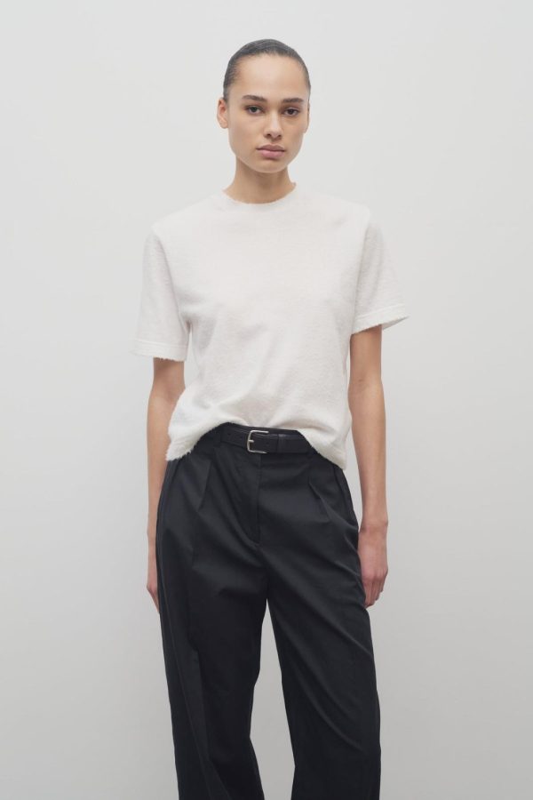 Slightly cropped t-shirt in softly brushed fine cotton with ribbed crewneck and boxy fit.