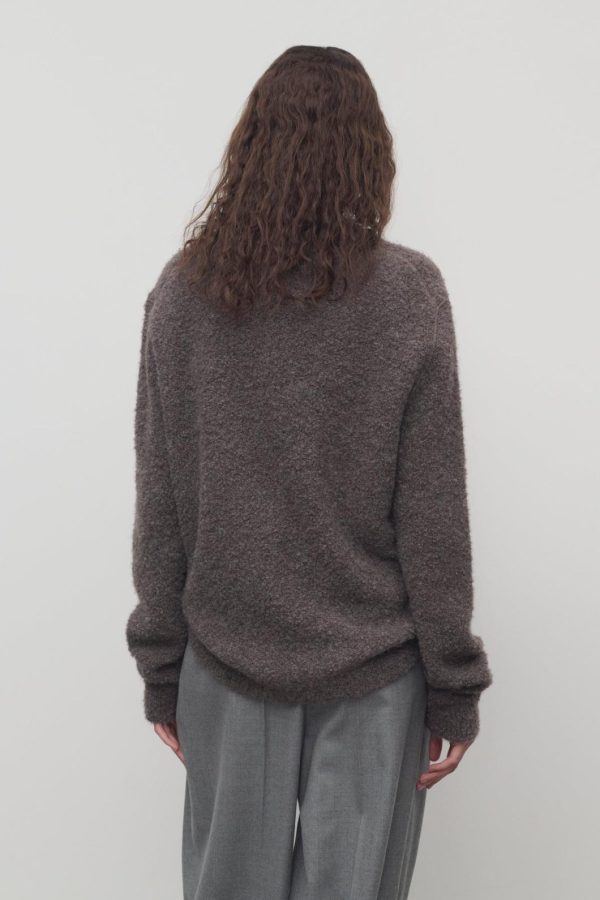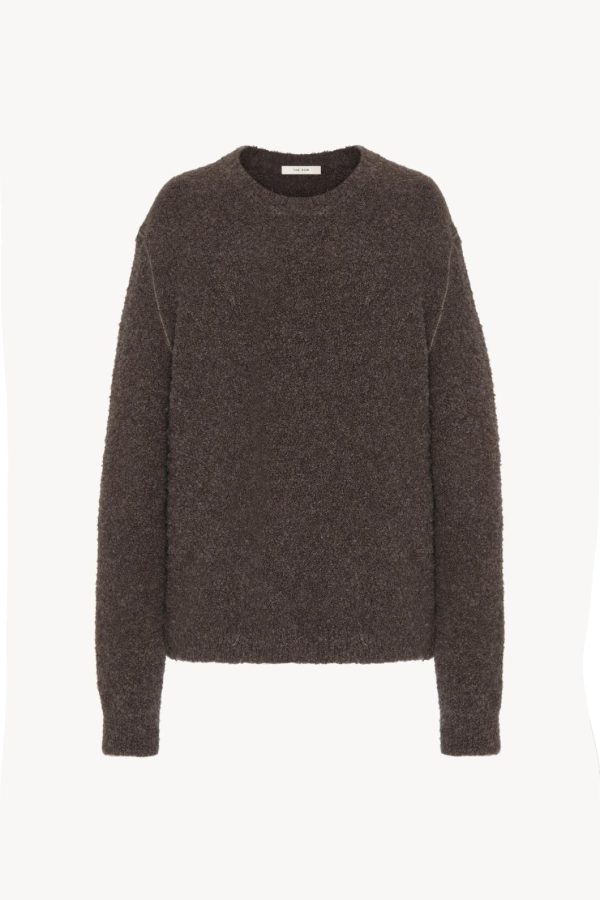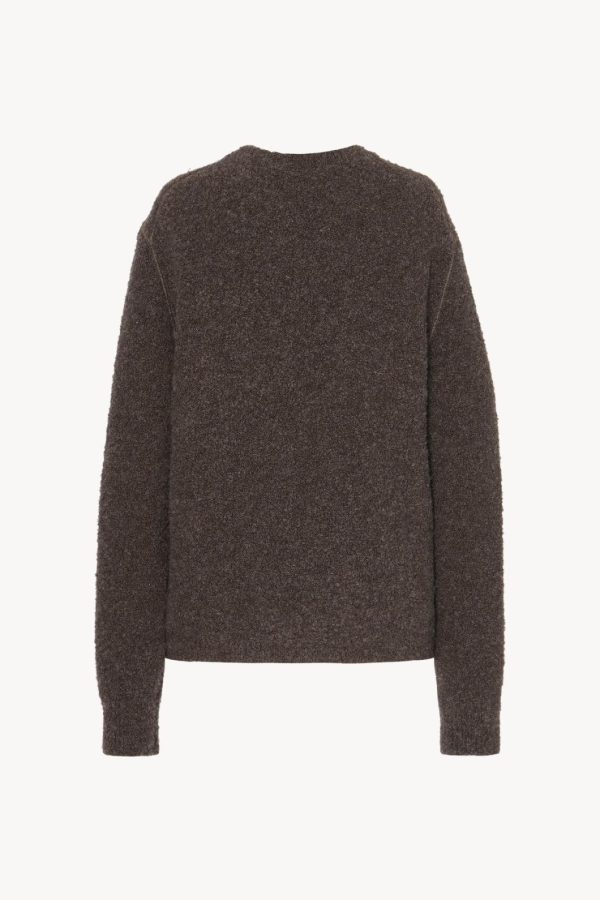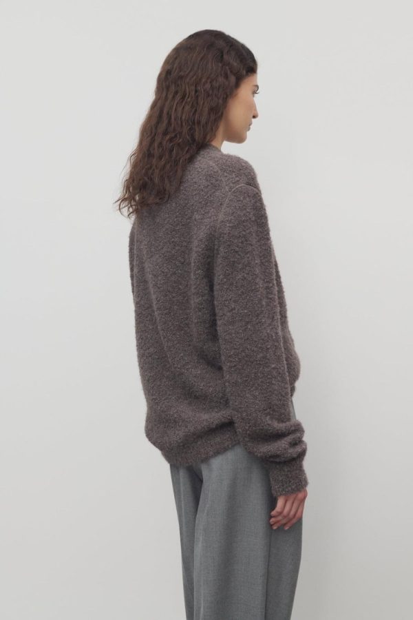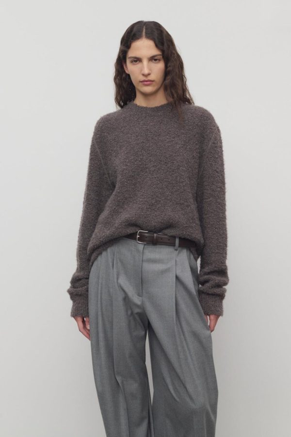 Relaxed crewneck sweater in textured alpaca and cashmere bouclé with topstitched armholes and ribbed neckline, cuffs, and hem.