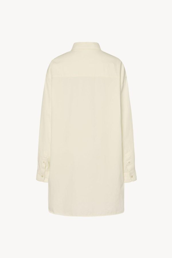 Oversized button-up shirt in cotton and cashmere gabardine with straight hem and exposed front placket with mother-of-pearl buttons.