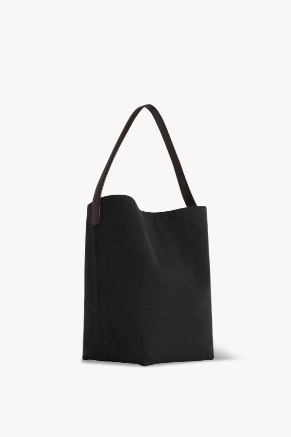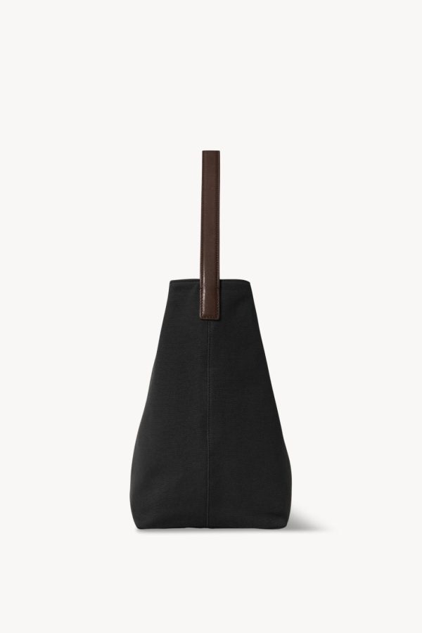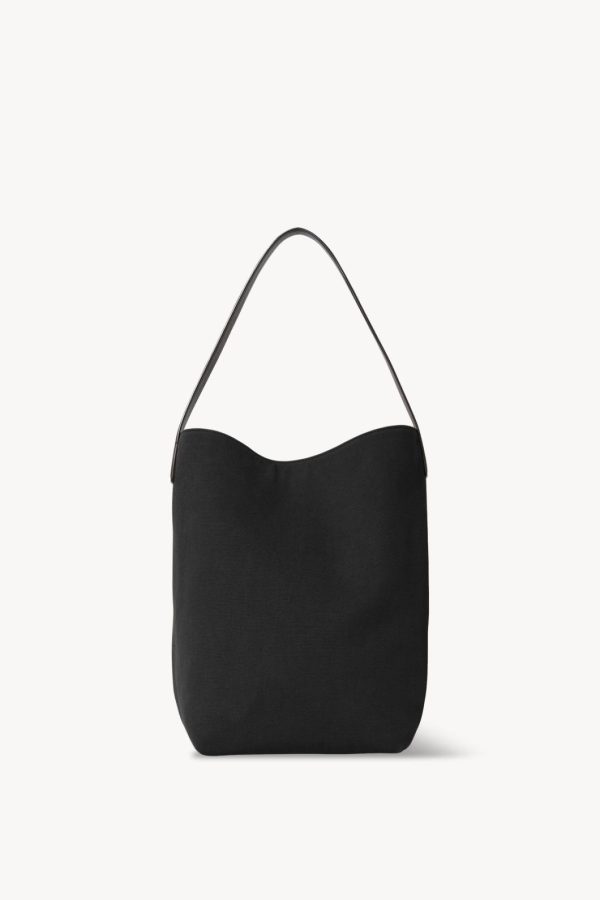 Classic tote bag in cotton canvas with interior toggle closure and flat handle.