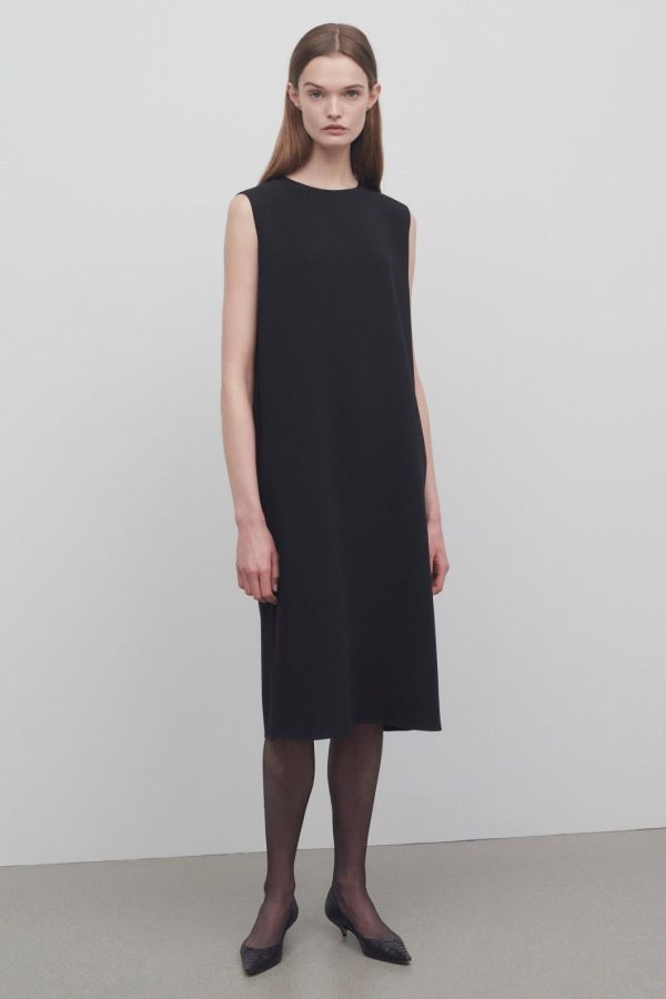 The Row Essentials sleeveless dress in fluid double-faced cady with straight silhouette.