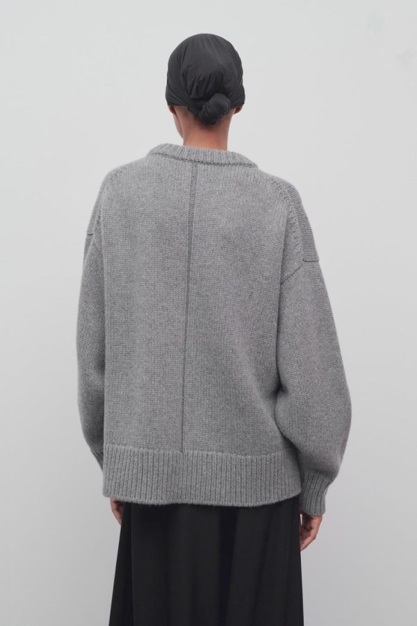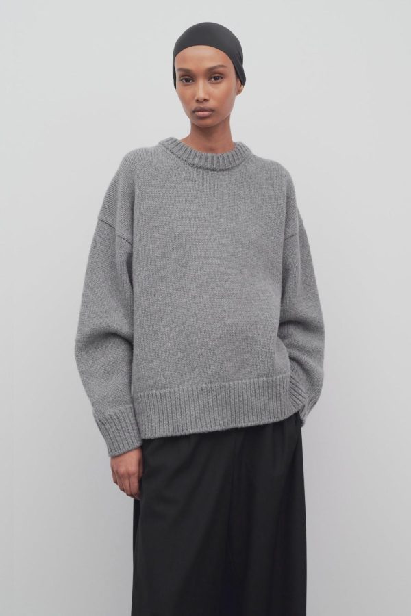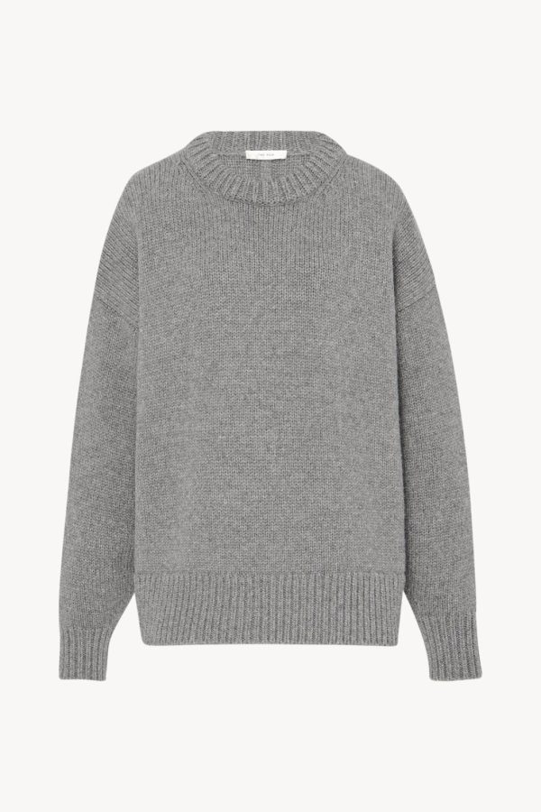 The Row Essentials crewneck sweater in multi-stitch, heavyweight wool and cashmere knit with ribbed neckline, cuffs and hem.