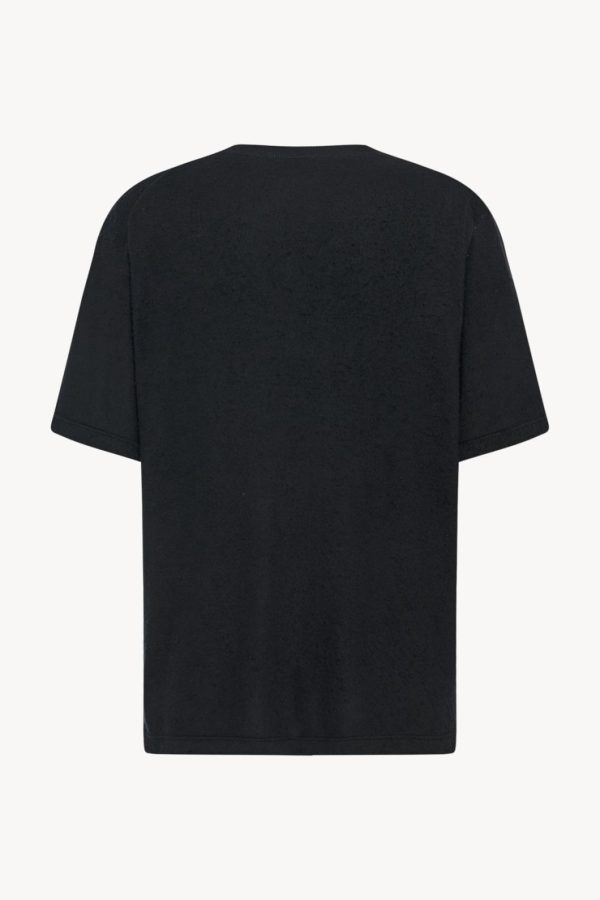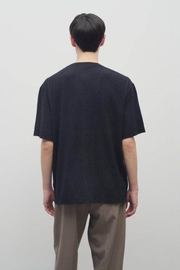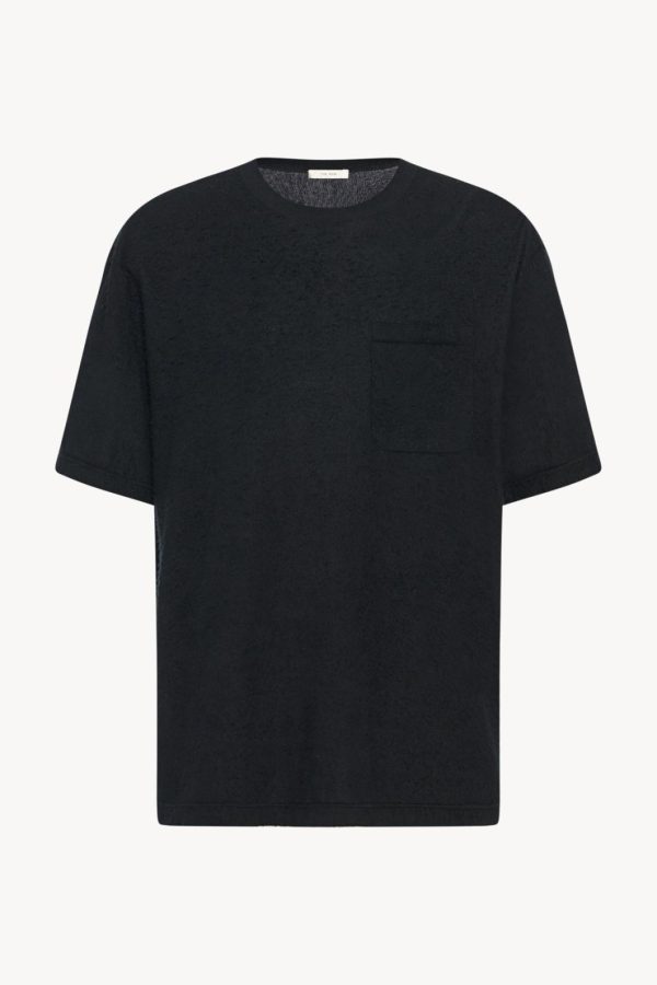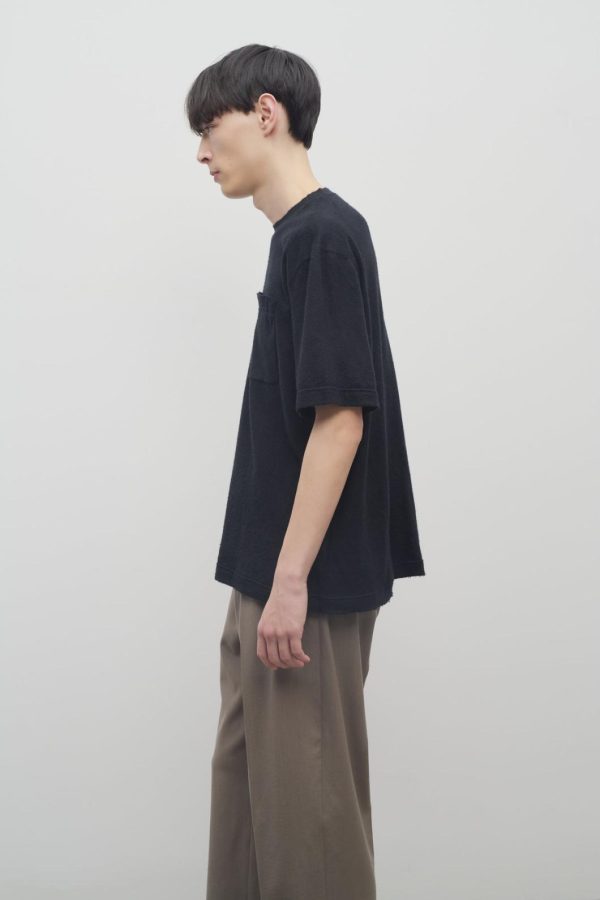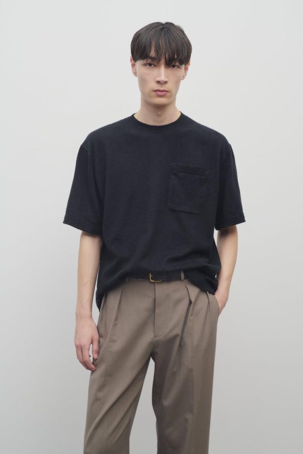 Relaxed crewneck t-shirt in softly brushed fine cotton with front patch pocket and ribbed neckline.