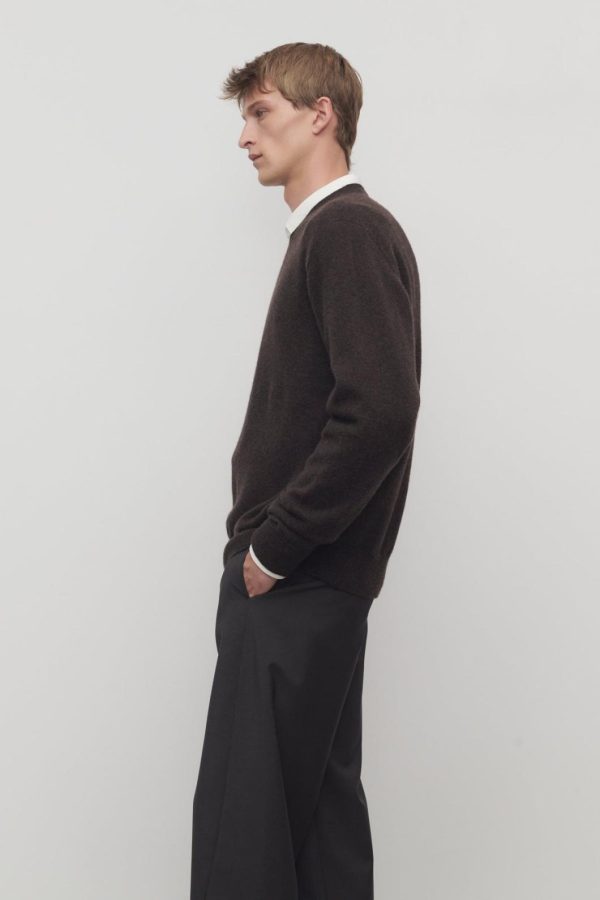 Classic v-neck sweater in soft cashmere with relaxed fit and ribbed neckline, cuffs, and hem.
