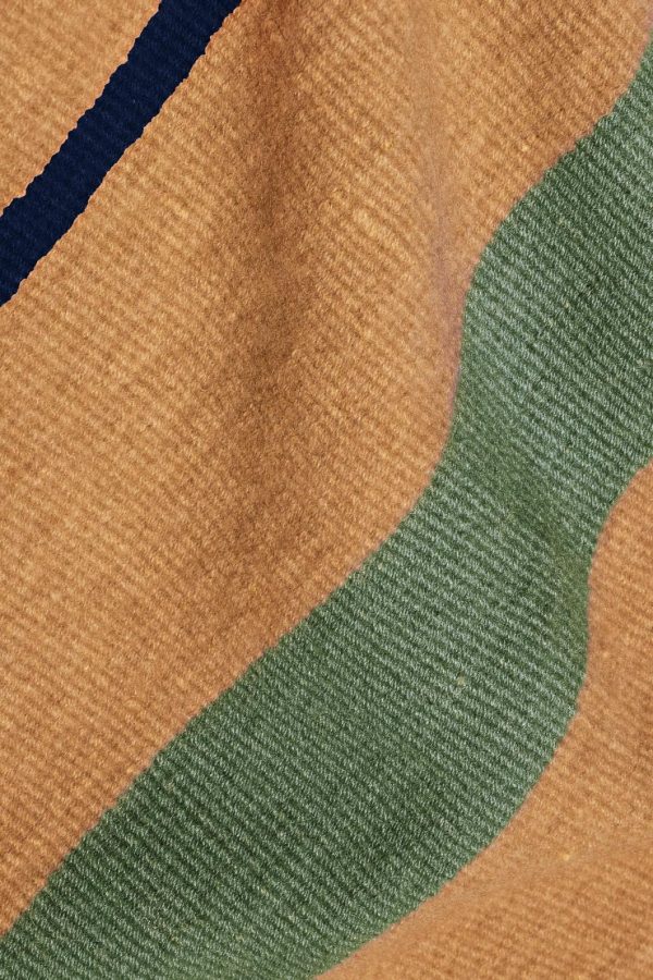 Wide woven scarf in textured silk and cashmere with contrast stripe motif and fringed finish.