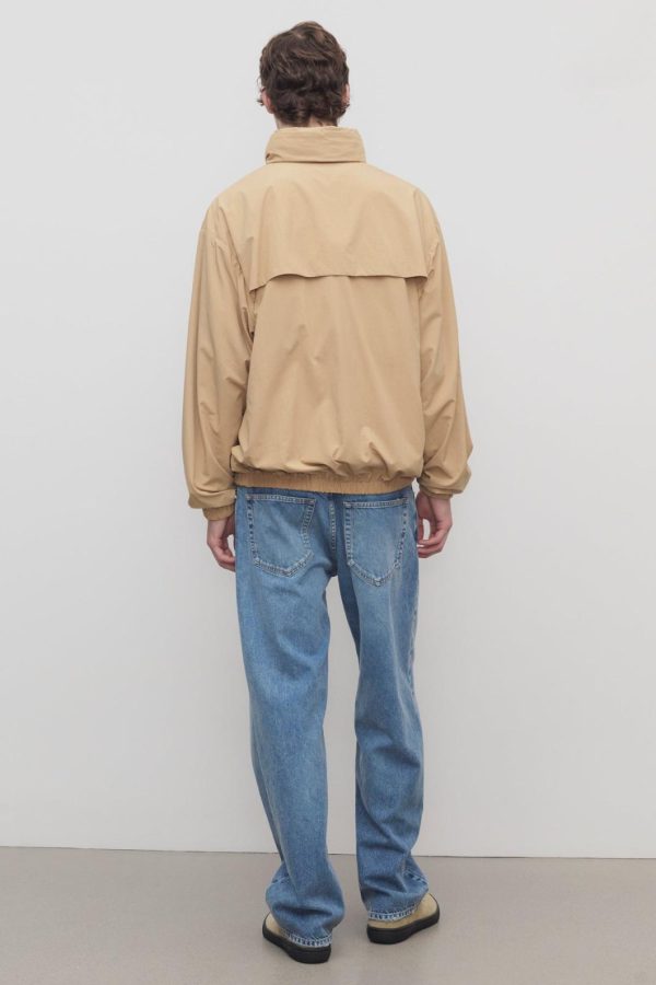 Mid-rise jean in gently faded cotton denim with straight leg, contrast topstitching, and classic 5-pocket construction.