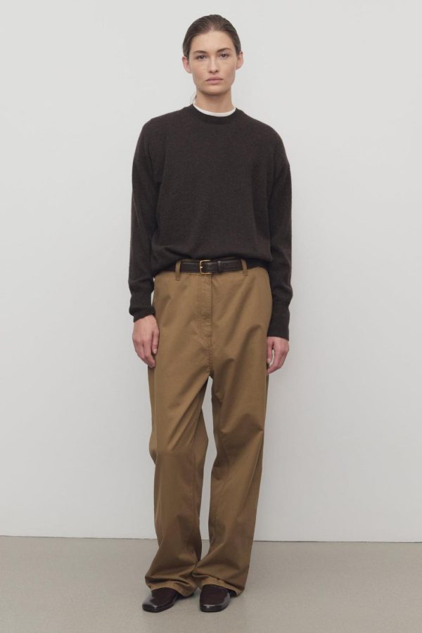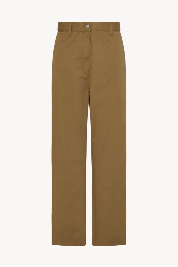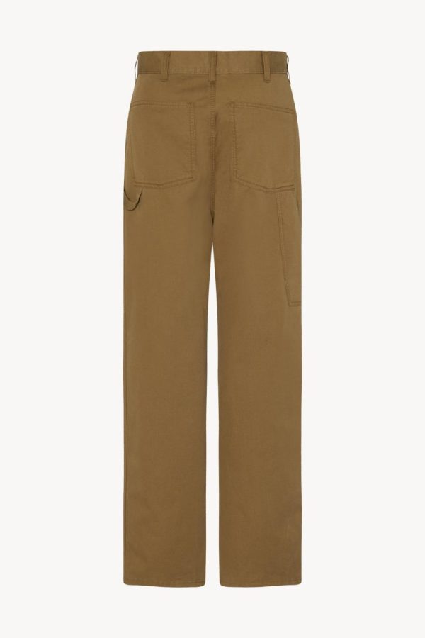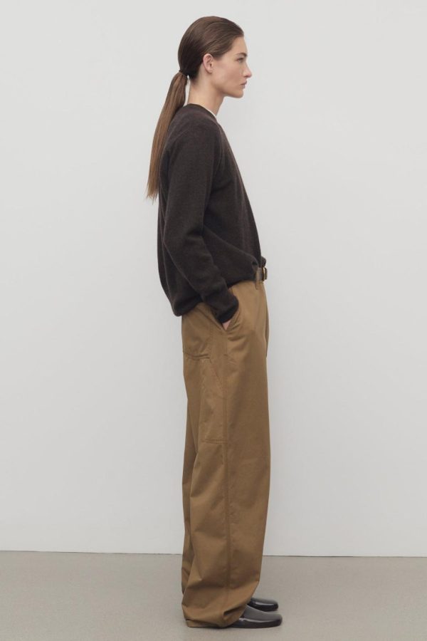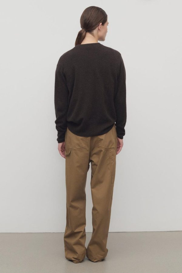 Mid-rise cargo pant in cotton and cashmere gabardine with straight leg, painter’s loop detail, and side seam pockets.