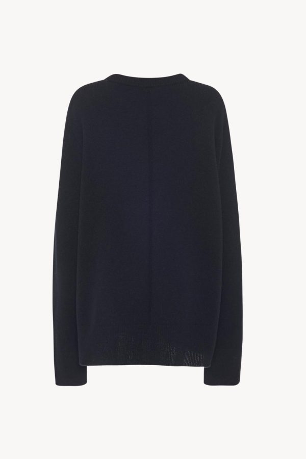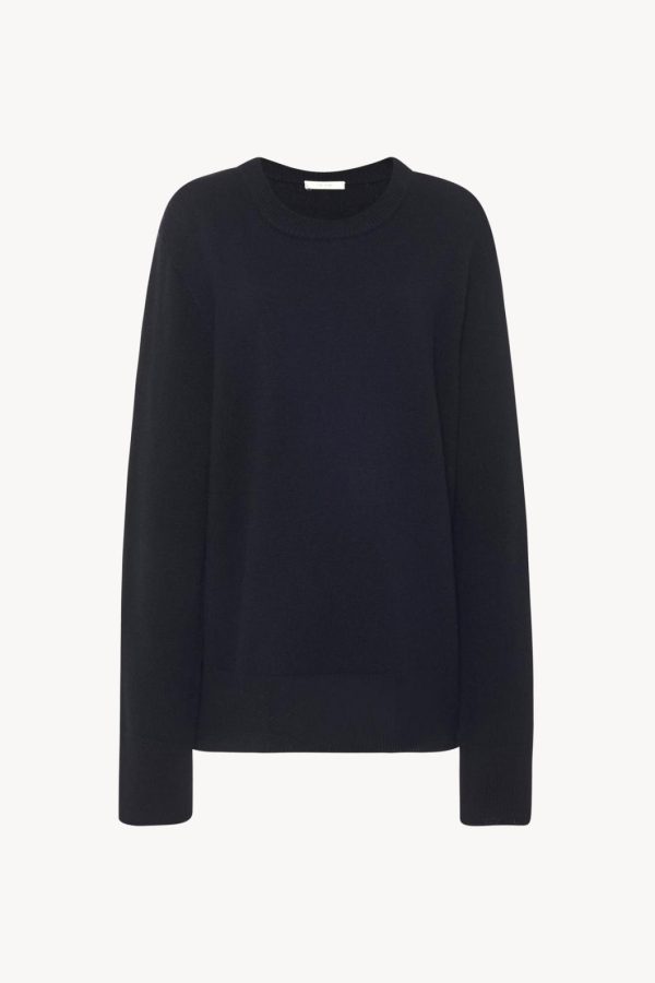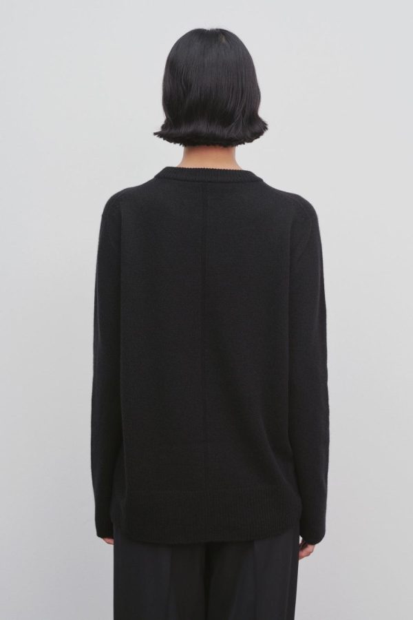 The Row Essentials crewneck sweater in midweight cashmere and wool knit with ribbed neckline, cuffs and hem.
