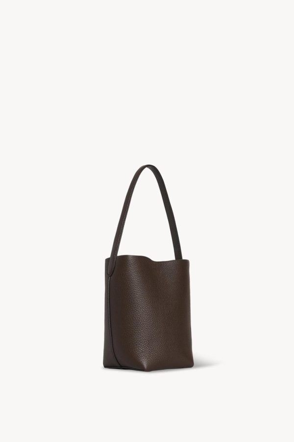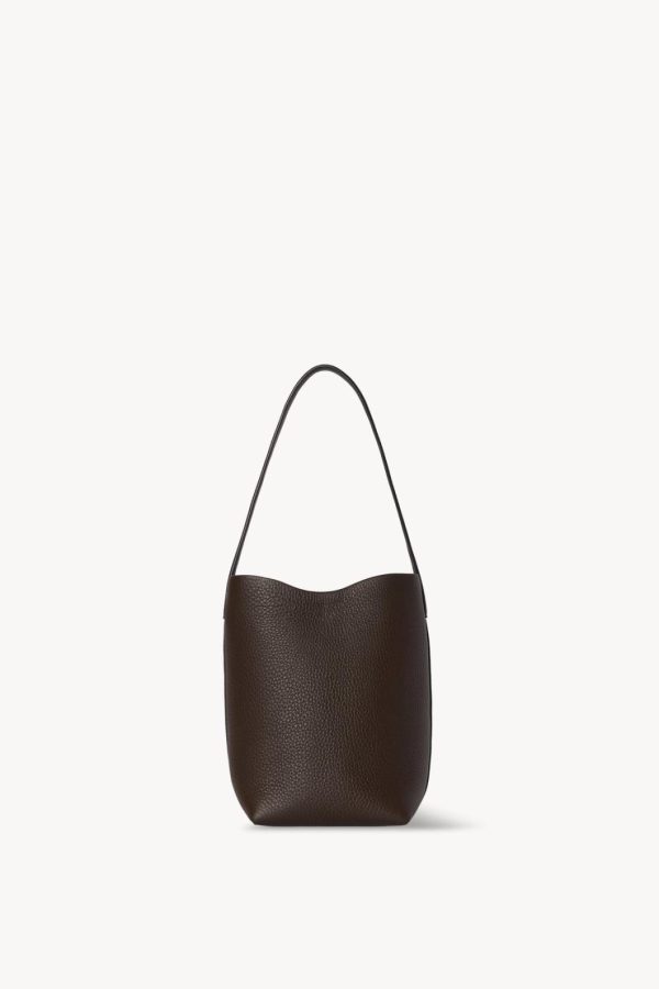 Classic tote bag in textured calfskin leather with interior tie closure and flat handle.