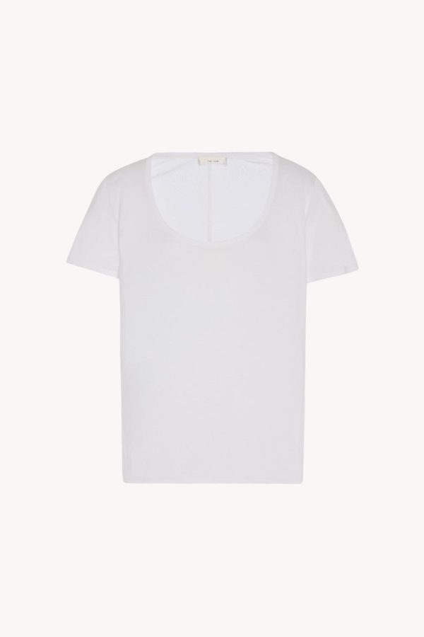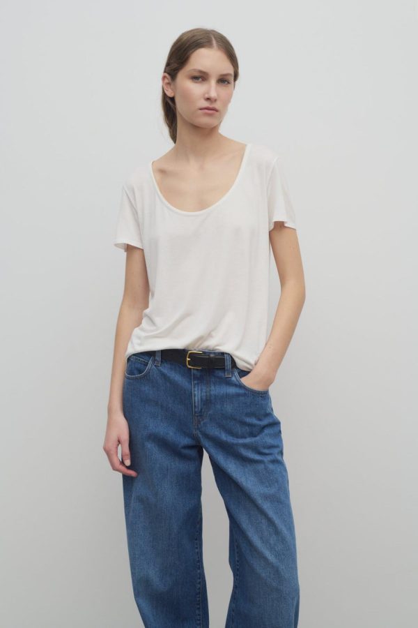 Scoop neck t-shirt in lightweight modal and silk jersey with regular fit and signature center back detail.