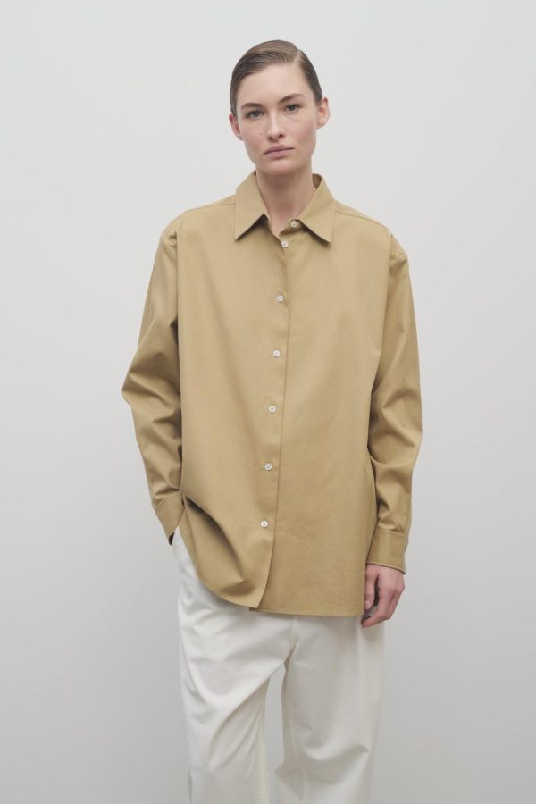 The Row Tansy Shirt In Cotton And Cashmere Beige | Women Shirts & Tops