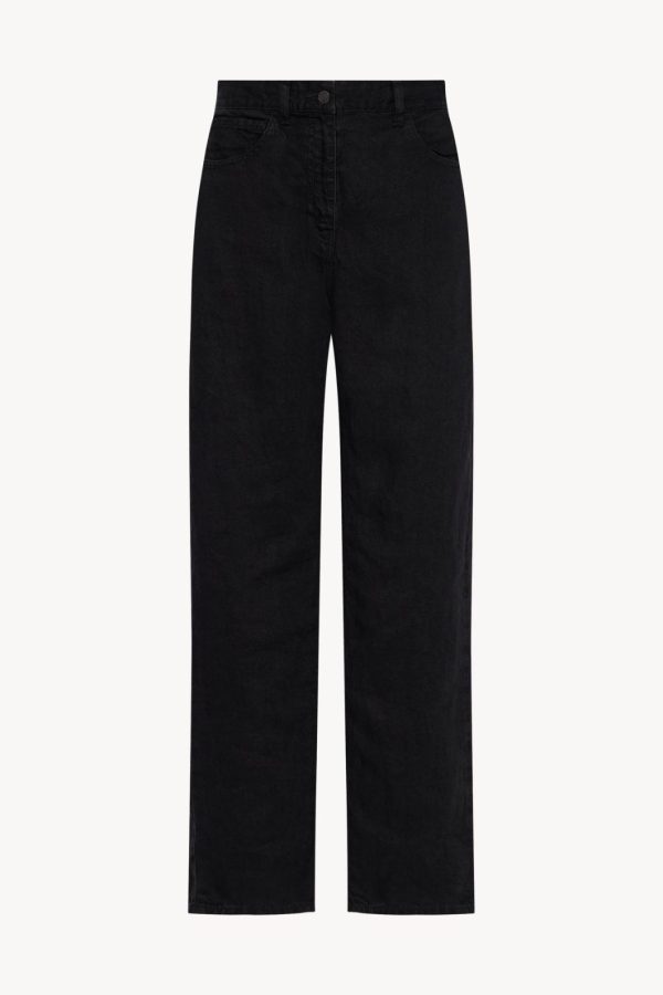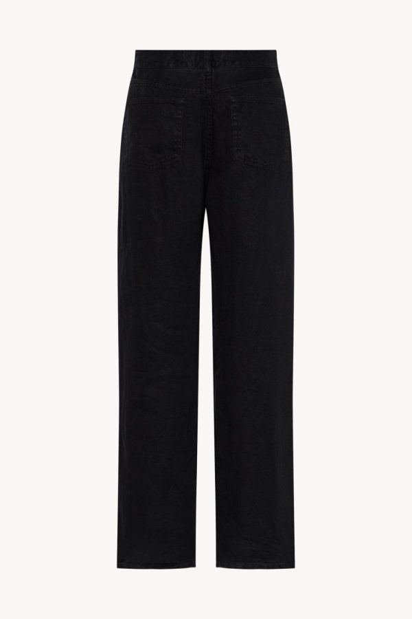 Mid-rise jean in soft linen denim with relaxed fit, tonal topstitching, and classic 5-pocket construction.
