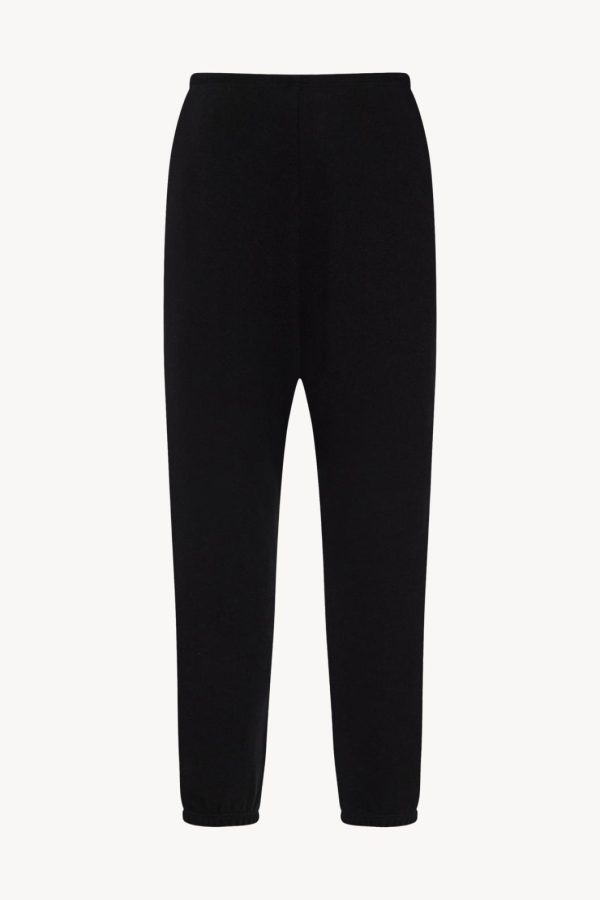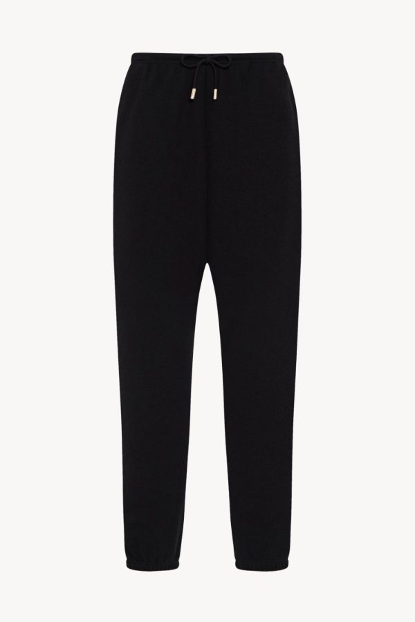 Mid-rise pant in cashmere and cotton French terry with slightly tapered leg, drawstring waist, and side seam pockets.